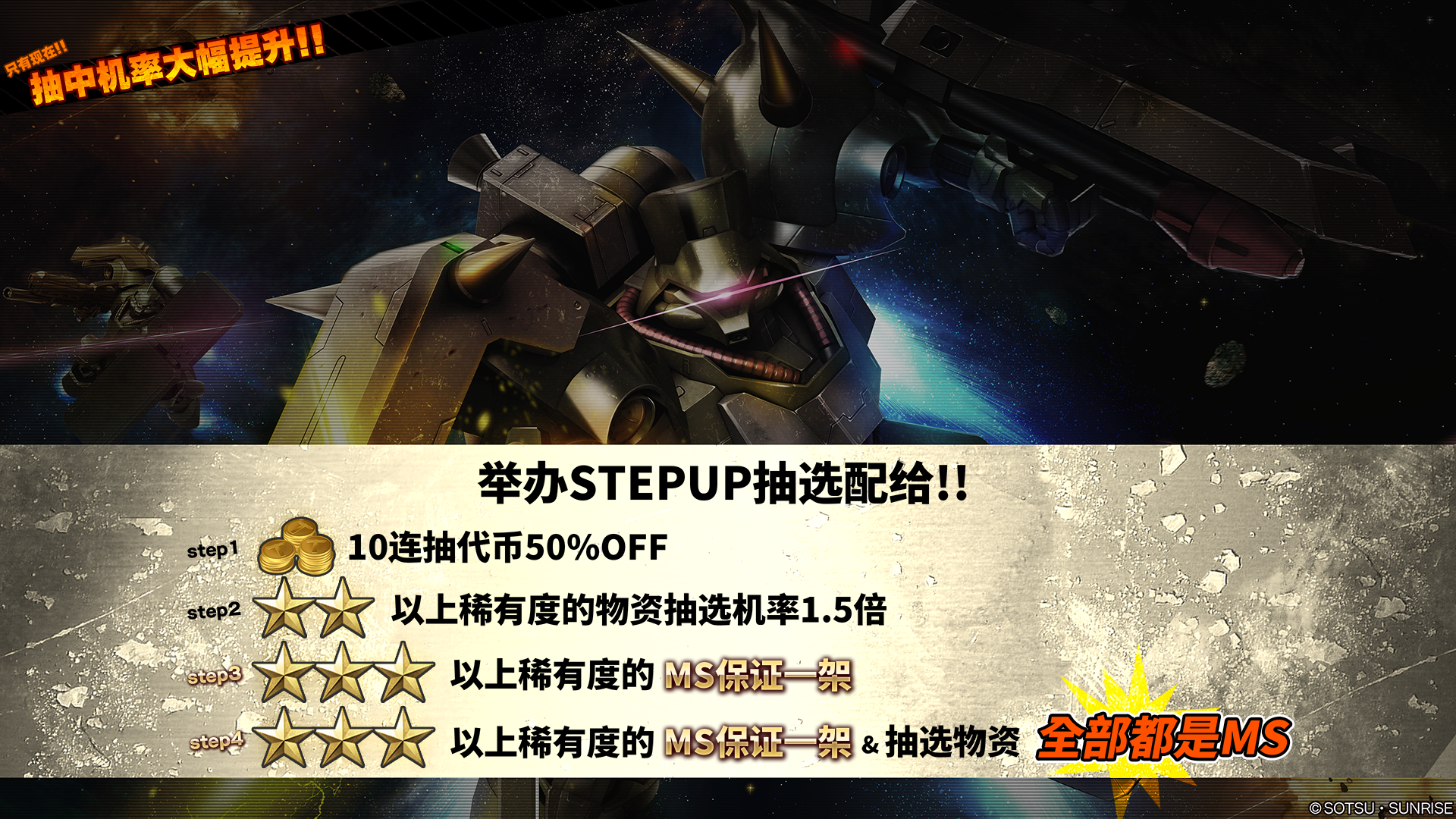 ・STEP4(代币30枚):保证随机获得★★★以上的MS1架!& 所有抽选物资皆为MS!