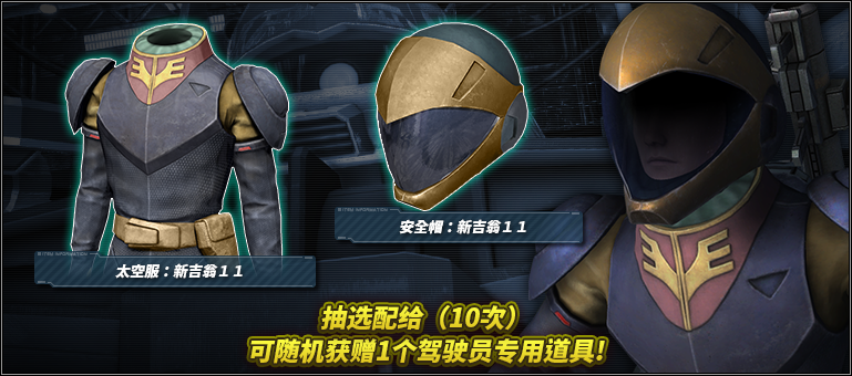 - ※期间内只要进行抽选配给(10次)就会自动进行第11次的抽选配给,就可随机获得驾驶员专用道具1个。