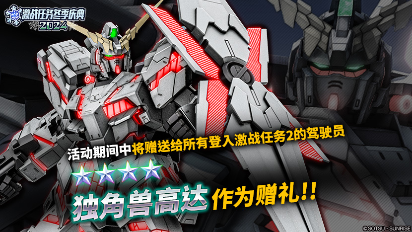 将赠送★★★★MS「独角兽高达LV1」给所有登入的驾驶员! - ※登入游戏后,请至报酬窗口领取。