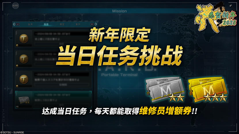 - ※如在2025年1月1日(周三)14:00<JST>更新前已完成当日任务,更新后出击一次即可更新「完成所有任务」的达成次数。