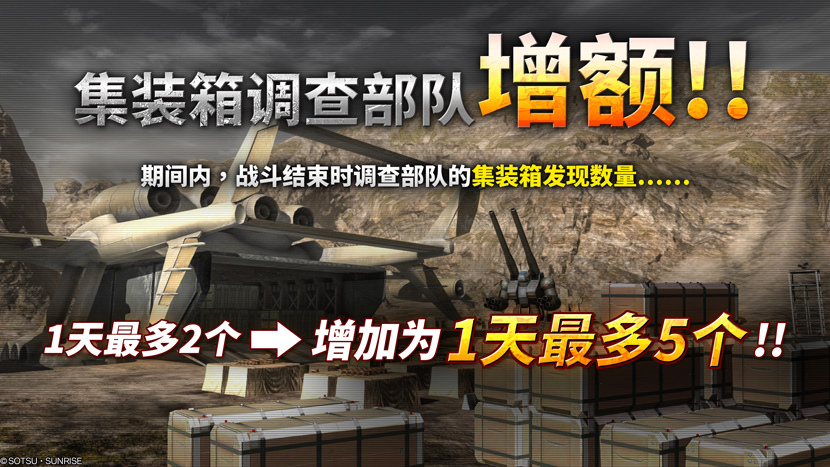 活动期间内,平时战斗结束后可发现的集装箱1天最多2个,此次则增加为1天最多5个。 -