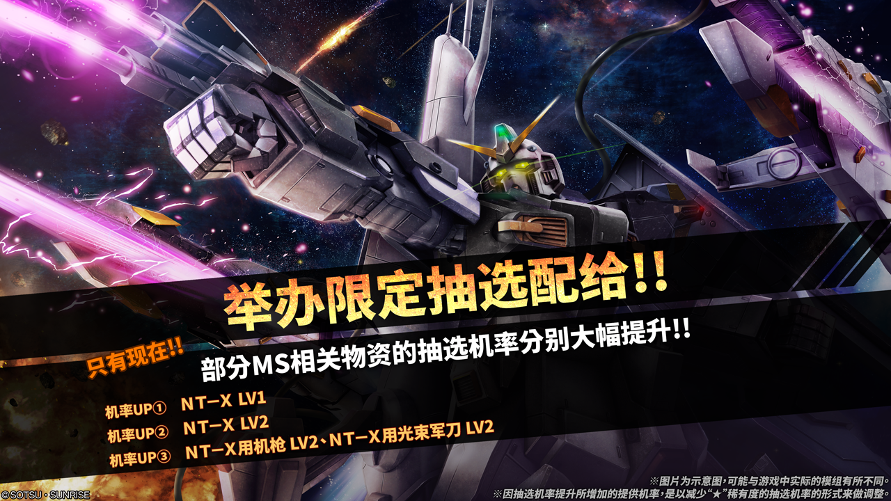- 限定抽选配给将会针对目标机体各LV、主武装等提高各自的抽选机率。