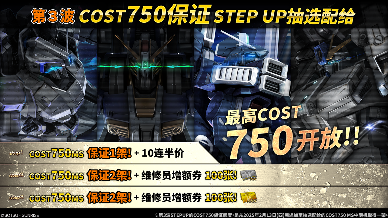 - ・STEP2(代币30枚):COST 750 MS 保证2架!+附赠维修员增额券[★★]100张!