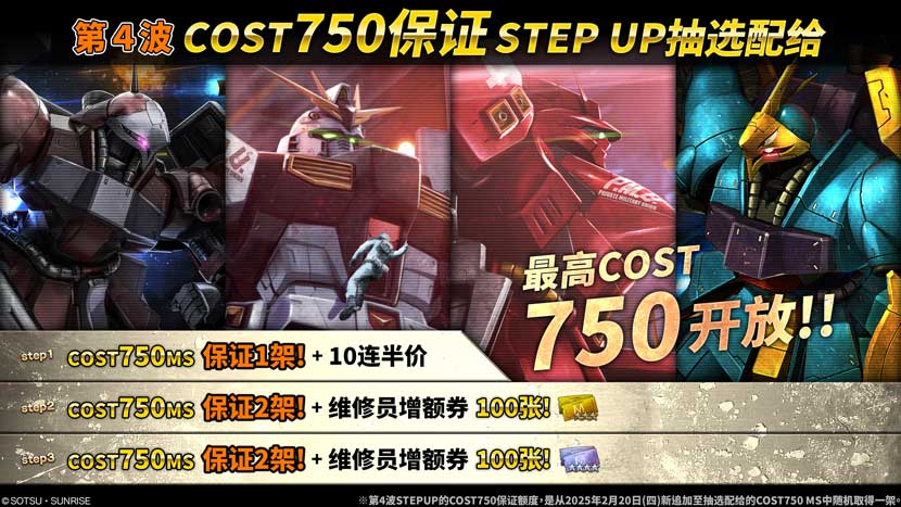 - ・STEP3(代币30枚):COST 750 MS保证2架!+附赠维修员增额券[★★★★]100张!