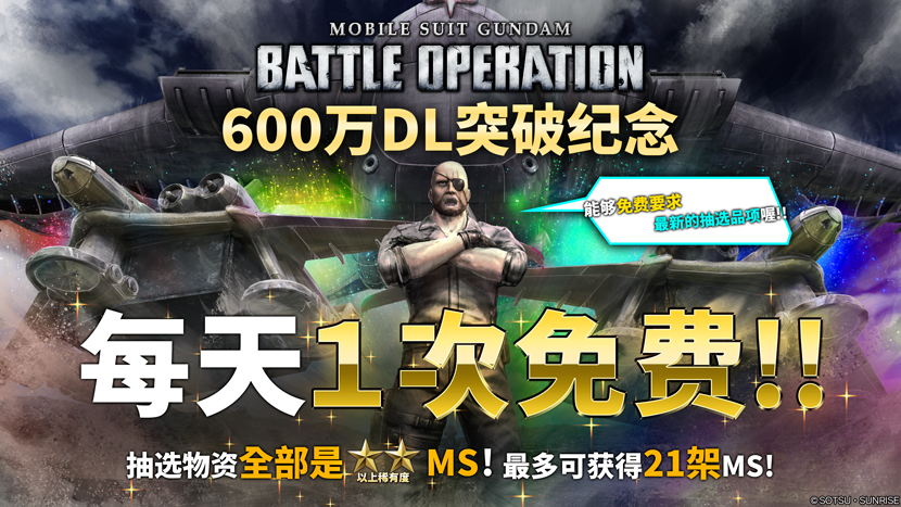 抽选物资全部是最新抽选品项的★★以上MS!最多可获得21架MS!