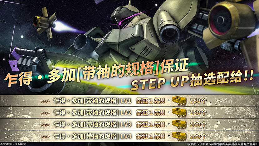 - ・STEP1(代币30枚):乍得・多加[带袖的规格] LV1 保证1架!+附赠改装套件[★★★]150个!