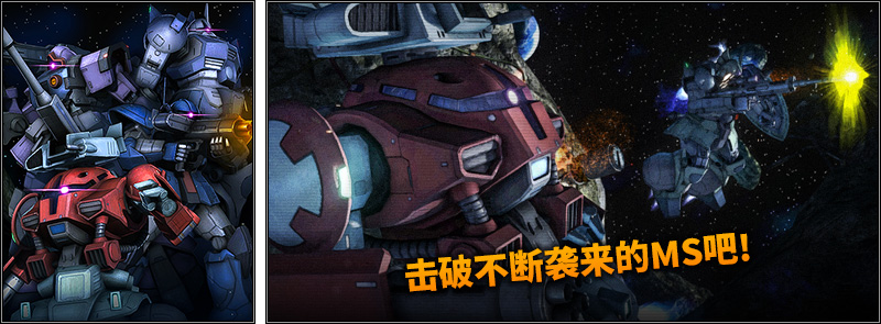 - ⇒ 除了可在TRIAL「高达的系谱」试乘新机体「F91」以外,还可在BOSS「从天而降的恐怖」与精神感应高达Mk-Ⅱ、毕格・萨姆挑战连战。
