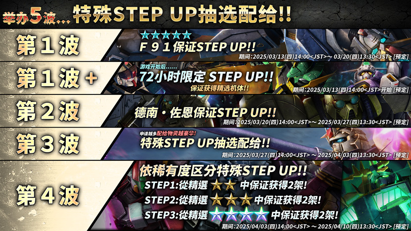 - 第4波:保证获得各稀有度MS的STEP UP!