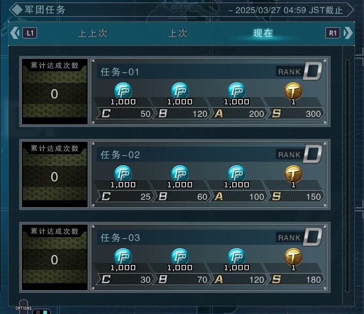 受本次维修影响,2025年3月20日(周四)5:00<JST> ~ 3月27日(周四)4:59<JST> 期间的军团任务将无法在游戏内确认,因此在此公告以下军团任务的详细内容。 - ■2025年3月20日(周四)5:00<JST> ~ 3月27日(周四)4:59<JST> 军团任务详细