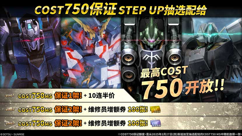 - ・STEP3(代币30枚):COST 750 MS保证2架!+附赠维修员增额券[★★★★]100张!