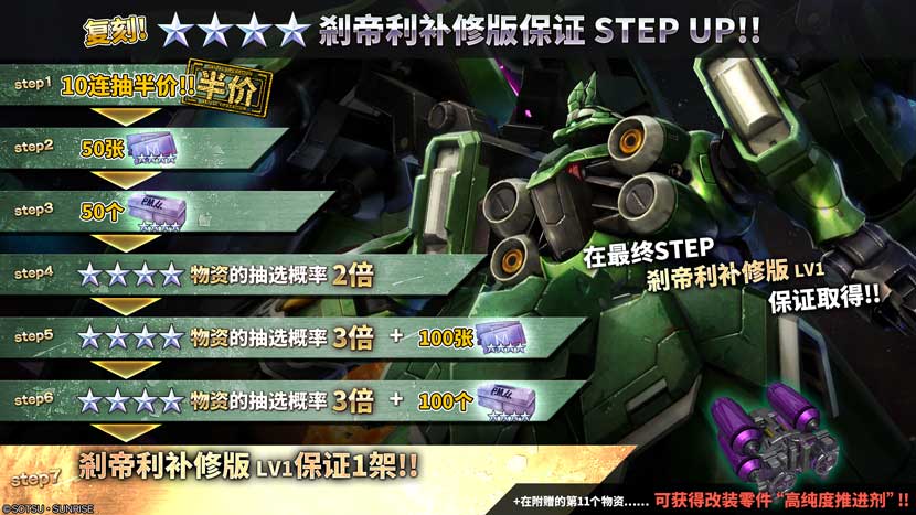 • ・STEP6(代币30枚):★★★★物资的抽选机率3倍!+ 保证获得改装套件[★★★★]100个