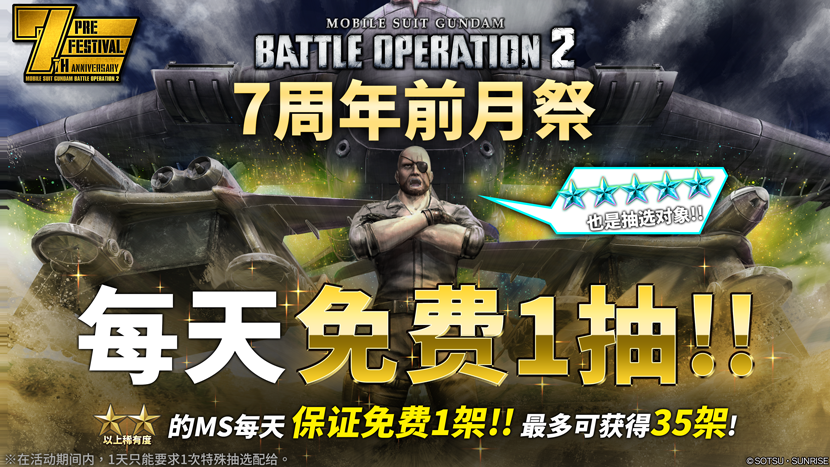 - 举办可获得新MS「白色高达LV1」及★★★强化物资的STEP UP抽选配给!