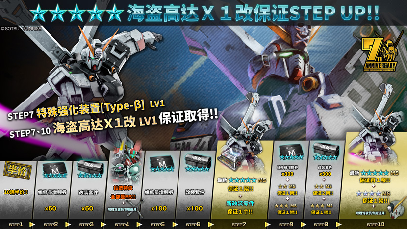 - ・STEP7(代币30枚):「海盗高达X1改 LV1」保证1架!!
