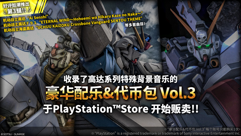 - ⇒ 购买豪华配乐&代币包 Vol.3,即可获得「10个」代币与高达系列的特别BGM。