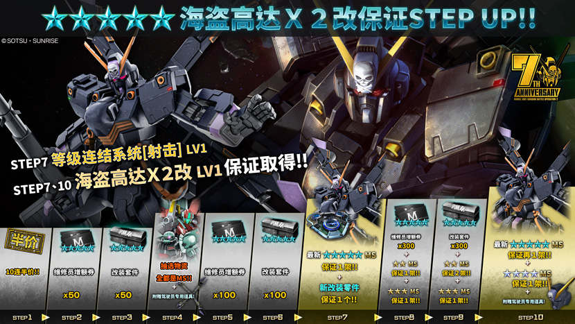 - ・STEP7(代币30枚):「海盗高达X2改 LV1」保证1架!!