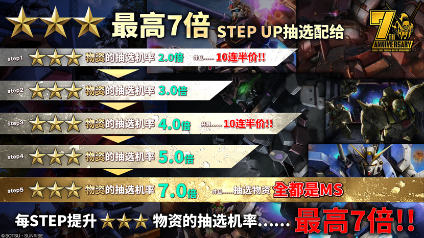 ・STEP5(代币30枚):★★★物资的抽选机率7倍!并且,抽选物资全部都是MS!