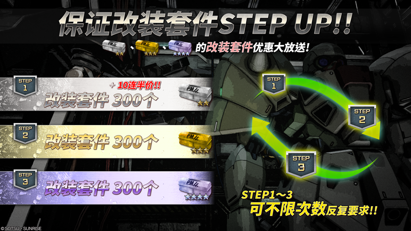 - ・STEP1(代币15枚):特赠改装套件[★★] 300个 !&10连抽半价!