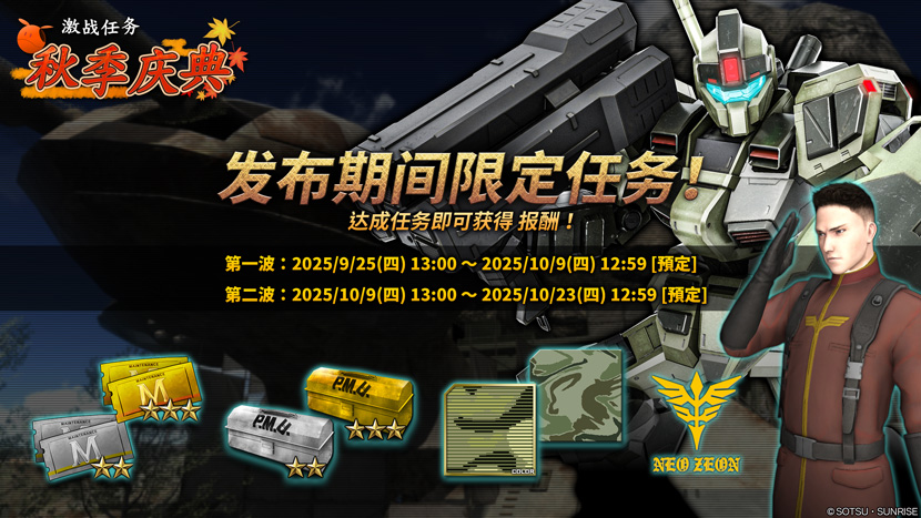 达成限定任务,即可获得MS、花纹、驾驶员用衣着、强化物资等相关报酬!