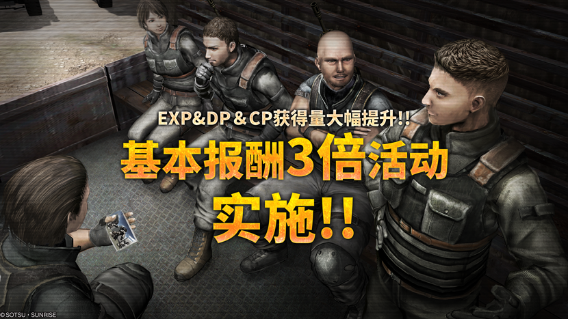 - 活动期间内,战斗结束后的基本报酬「EXP」「DP」「CP」增为3倍。