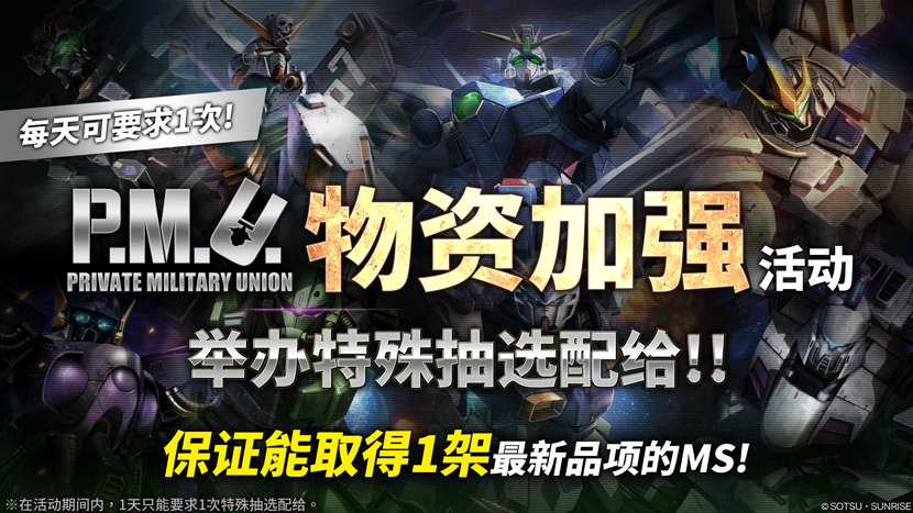 并且,在特殊抽选配给中,保证可获得最新抽选物资中的MS 1架。