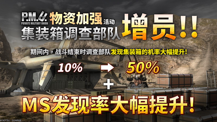- 活动期间内,平时战斗结束后的集装箱发现率为「10%」,此次则增为「50%」。