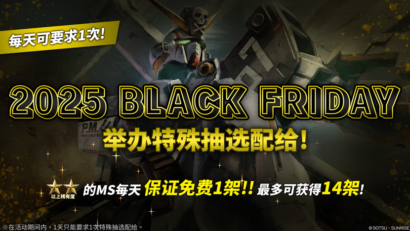 - 1.【2025 BLACK FRIDAY】只要登入游戏,即可获赠「黑色MS」!