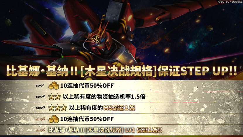 - ・STEP5(代币30枚):比基娜・基纳Ⅱ[木星决战规格]LV1保证1架!