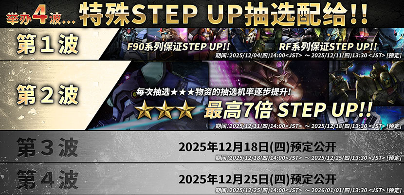 活动期间,将举办第1波~第4波特别STEP UP抽选配给。 -