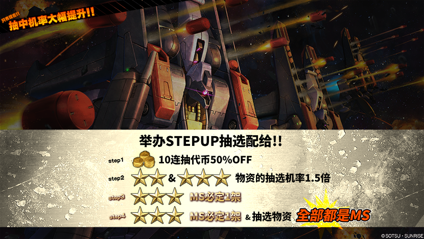 ・STEP4(代币30枚):保证随机获得★★★MS1架!& 抽选物资全部都是MS!