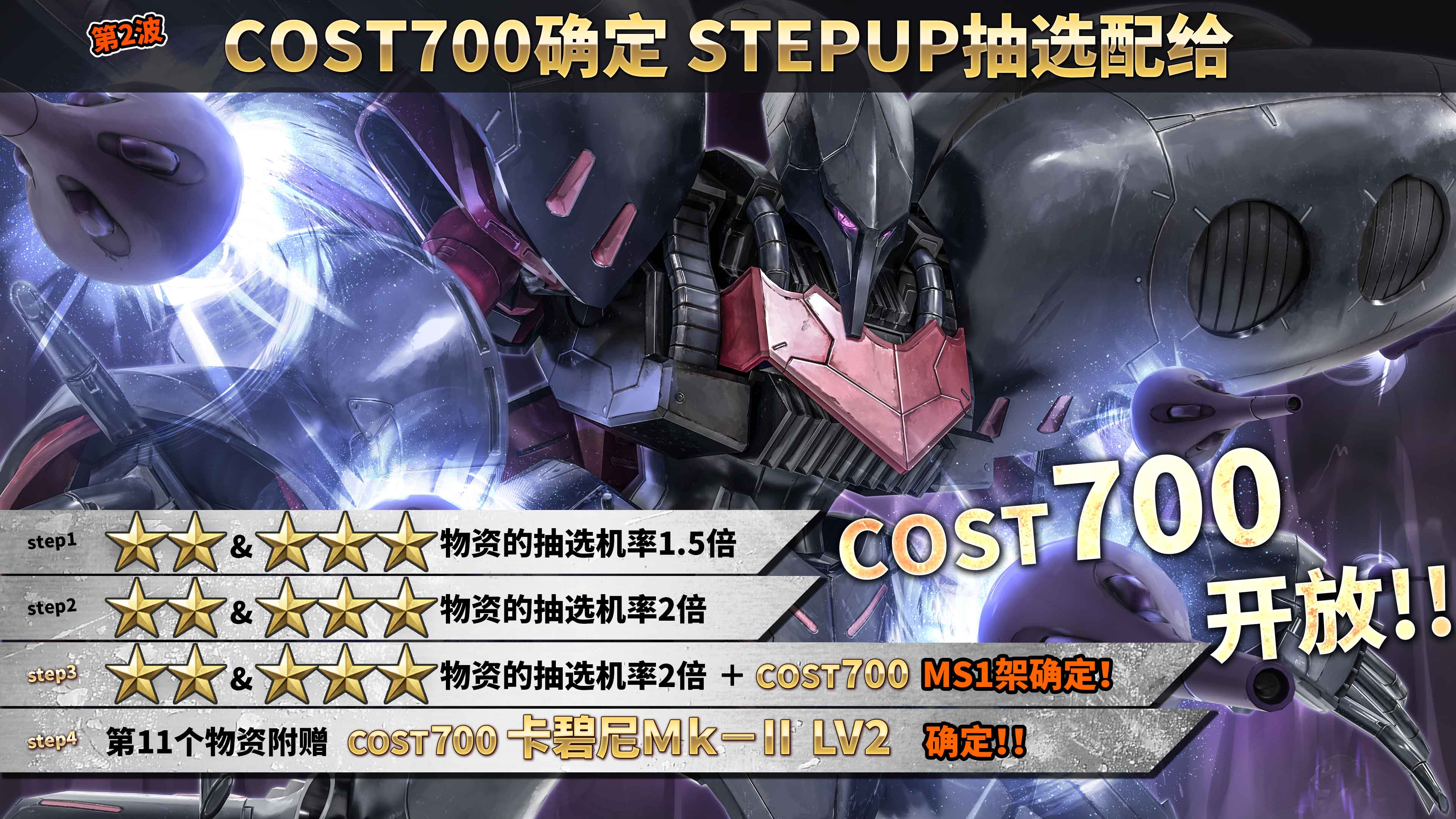 ・STEP2(代币30枚):★★&★★★的物资抽中机率提升2倍!+ 保证随机获得一架COST700 MS!