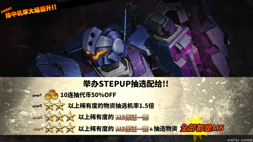 ・STEP4(代币30枚):★★★以上MS保证随机获得1架! & 抽选物资全部都是MS!