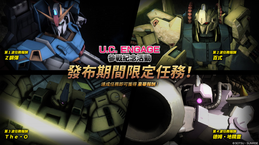 - 2024年1月25日(週四)起,將實施『機動戰士鋼彈 U.C. ENGAGE』激戰任務參戰紀念活動。