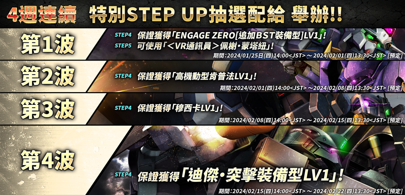 - 第4波:保證獲得迪傑・突擊裝備型 STEP UP!