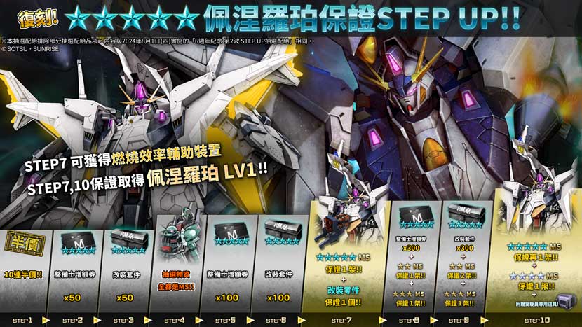 - ・STEP9(代幣30枚):★★MS保證2架&★★★MS保證1架!