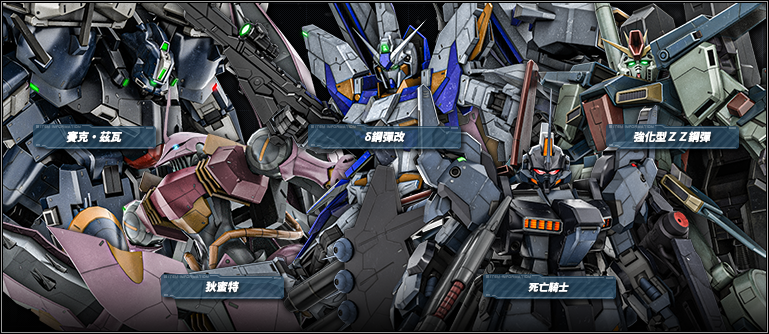 ・★★★★ δ鋼彈改 LV3 (泛用機、地上/宇宙兩用機體、成本值750) ・★★★★ 賽克・茲瓦 LV3 (泛用機、地上/宇宙兩用機體、成本值750) ・★★★★ 強化型ZZ鋼彈 LV2 (突擊機、地上/宇宙兩用機體、成本值750) ・★★★★ 狄蜜特 LV2 (突擊機、地上/宇宙兩用機體、成本值700) ・★★★ 死亡騎士 LV3 (泛用機、地上/宇宙兩用機體、成本值750) -