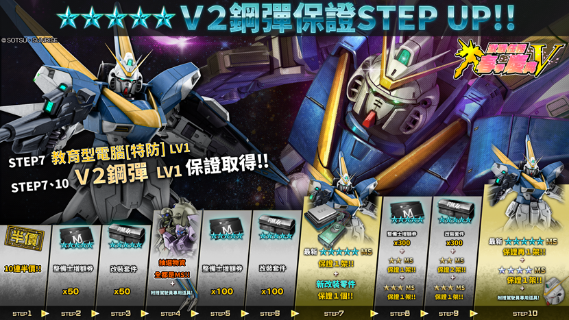- ・STEP7(代幣30枚):「V2鋼彈 LV1」保證1架!!