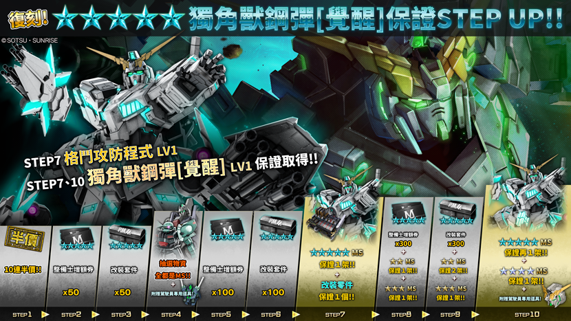 - ■【復刻】獨角獸鋼彈[覺醒]保證STEP UP抽選配給公告