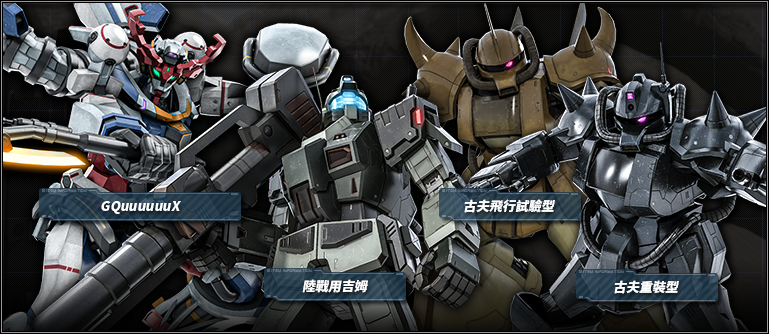・★★★ GQuuuuuuX LV2 (泛用機、地上/宇宙兩用機型、成本值550) ・★★~★ 古夫重裝型 LV3~4 (泛用機、地上專用機型、成本值400~) ・★★~★ 古夫飛行試驗型 LV3~4 (泛用機、地上專用機型、成本值450~) ・★ 陸戰用吉姆 LV4 (突擊機、地上專用機型、成本值400) -
