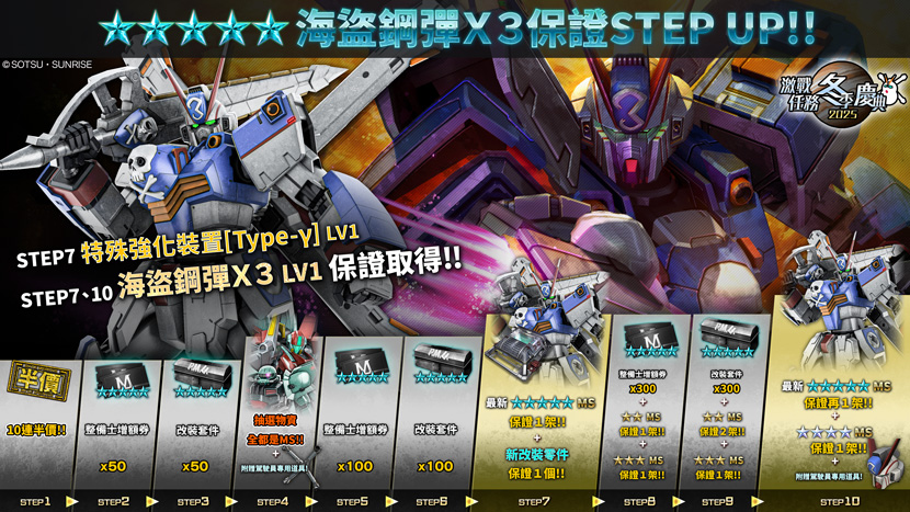 - ・STEP9(代幣30枚):★★MS保證2架&★★★MS保證1架!