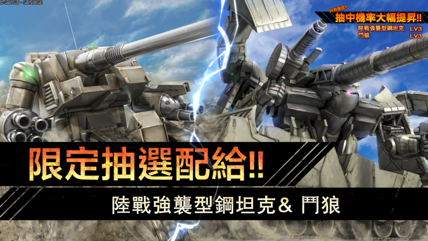 限定抽選配給提昇,「陸戰強襲型鋼坦克&鬥狼」的抽中機率。 - ■抽中機率提昇的物資